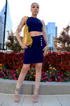 Make a statement in the "BOATRUPT" Skirt Set! This two-piece is perfect for making a fashion statement at any occasion. The gold sailor buttons bring a unique, pool party vibe, while the skirt and top look great with either heels or sandals. For late nights of sailing or dancing, this skirt set will be sure to keep you looking chic!