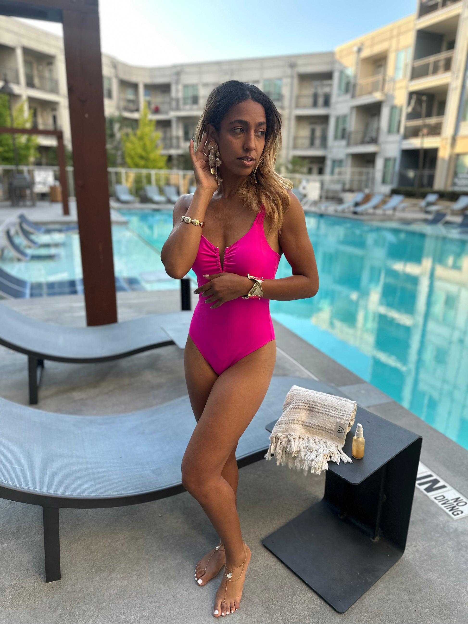 Effortlessly radiant, unapologetically refined — the Bubble Glow One-Piece by Yacht Club Access is where luxury meets luminosity. Designed for the woman who commands attention without saying a word, this statement swimwear piece evokes the shimmer of champagne bubbles against the evening tide.